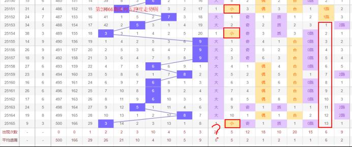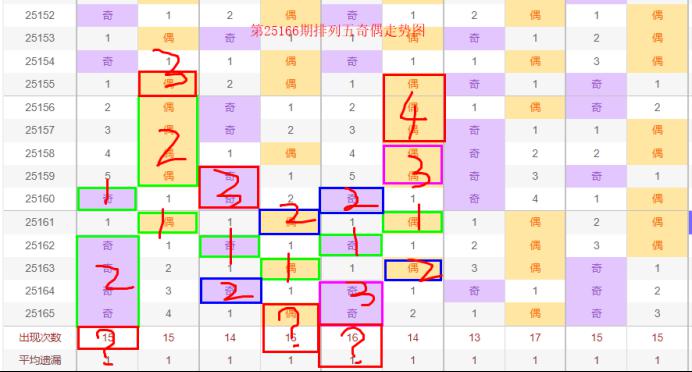 从奇偶走势分布图看,有以下特点:1、万位的分布形状以25160期和25161期中线为轴线,上下形状形成对角对称,按照这趋势,本期万位趋向于开奇数;2、千位的分布形状以25162期和25163期中线为轴线,上下形状形成对角对称,按照这趋势,本期千位趋向于开偶数;3、百位的分布形状以25161期和25162期中线为轴线,上下形状形成对角对称,按照这趋势,本期百位趋向于开奇数。