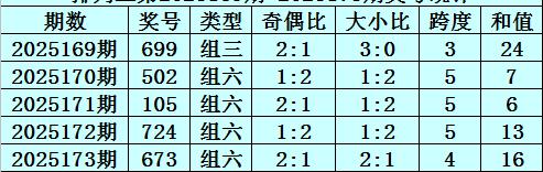 跨度分析:最近5期分别开出跨度:2、3、5、2、6,本期预计跨度走大,一码跨度参考7。