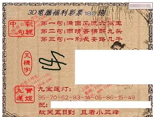 九宝图25180期福彩3D寻码图