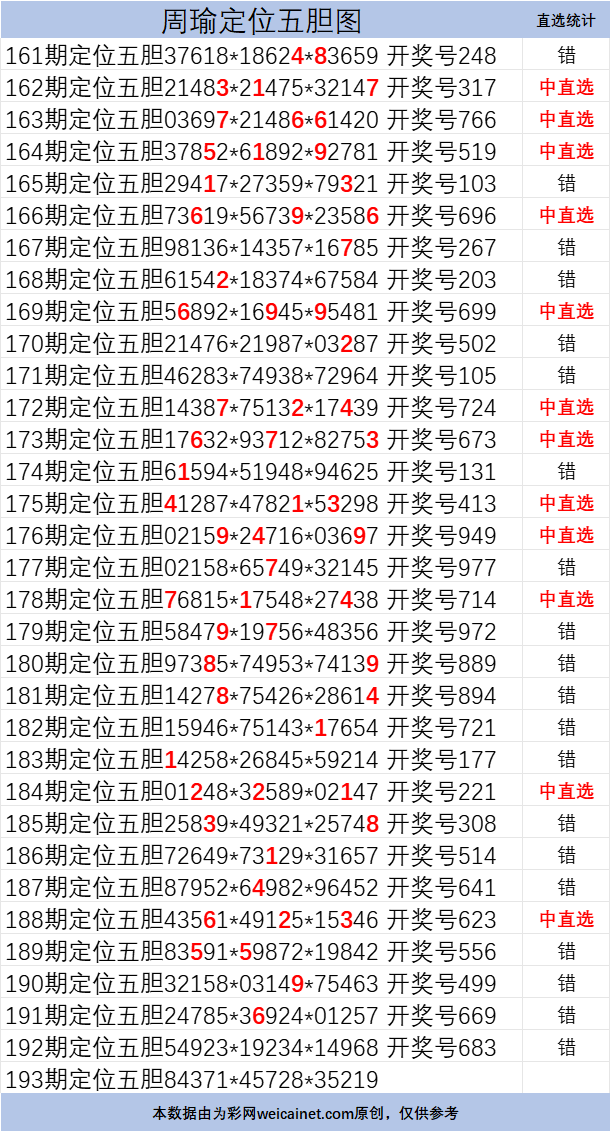 排列三25193期胆码 周瑜定位五胆图