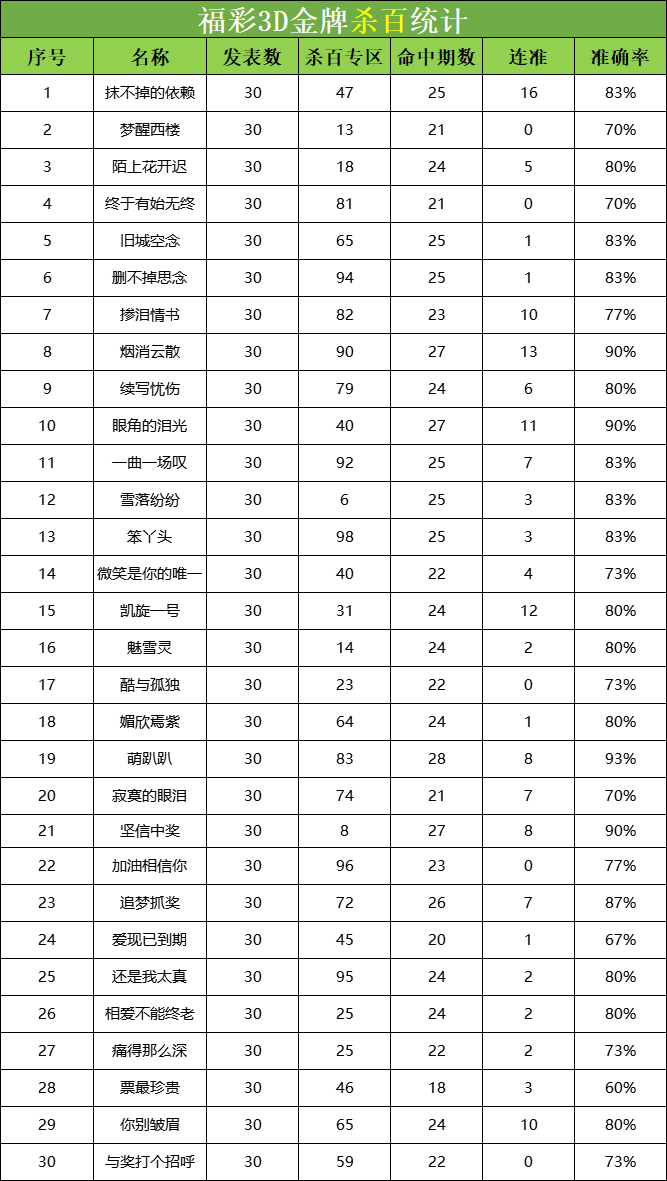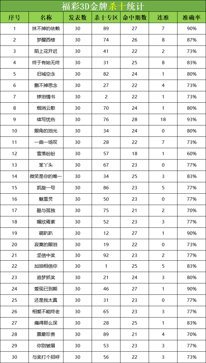 福彩3D 25193期杀码 杀百统计