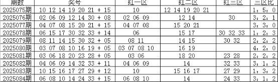 一区上期走热,开出3个红球,近10期开出23个红球,表现非常活跃,本期预计走温,开出1-2个红球,参考号码01、11;二区上期走温,开出1个红球,近10期共开出23个红球,出号比例相对较高,本期预计走温,开出1-2个红球,注意号码12、14;三区上期走温,开出2个红球,近10期共开出14个红球,走势相对较冷,本期预计继续温冷,看好号码25、28;