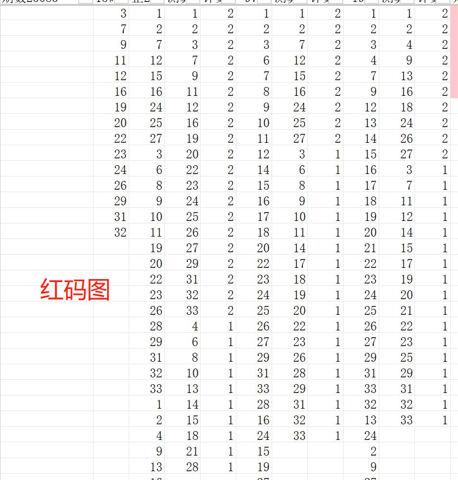 得出一组红码数据就是:3 7 9 11 12 16 19 20 22 23 24 26 29 31 32