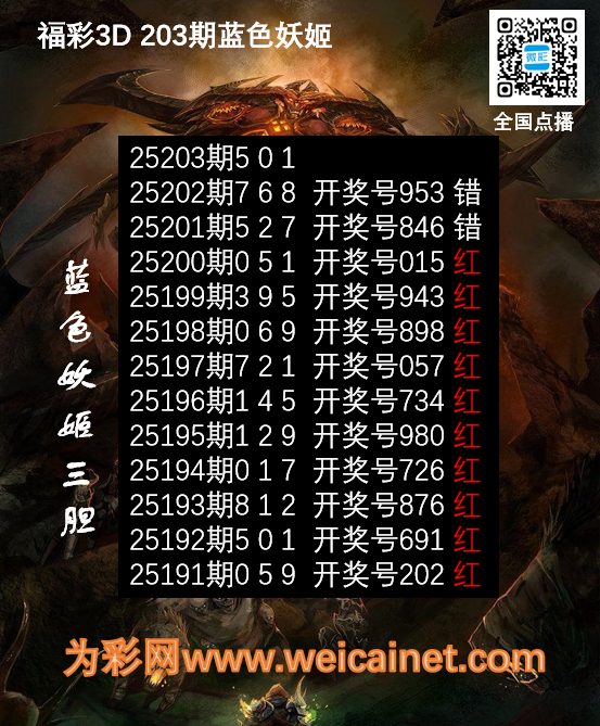 福彩3D25203期胆码 蓝色妖姬胆码图 发表于:2025-08-01 10:43:20 浏览次数:0 上一篇:福彩3D25203期一句定三码字谜汇总 下一篇:福彩3D25203期胆码 吸血鬼双胆图 推荐文章