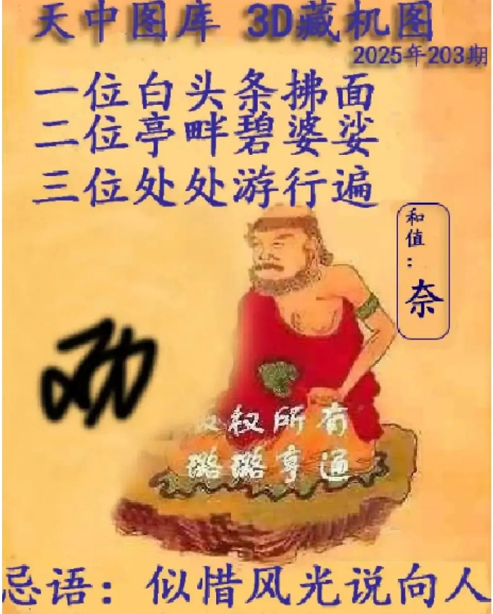 福彩3D25203期天中藏机图