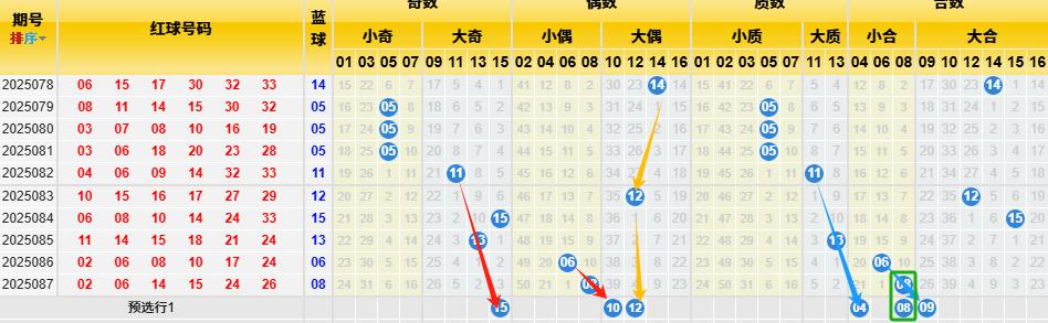 1、小大奇偶交叉图(小奇数红色箭标、小偶数黄色箭标、大偶数蓝色箭标、大奇数绿色箭标)