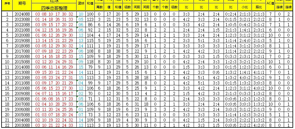 附:2003年起每年088期开奖号各类数据,供大家参考!大佬和彩友们速速拿走~