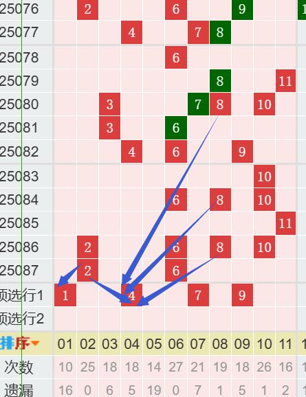 那么088期,我们首先看一下一分区的号码,上期开出0206,本期的话主要是关注奇数号码。那么奇数号码的01作为一个龙头,首先是要关注的,那么01的组合是有010407