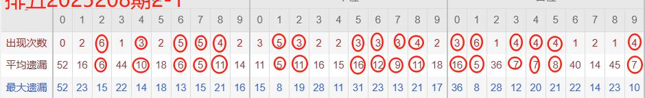 下图所圈出的为近30期各位置所出现的热码出现次数及平均遗漏值,用以参考和一些冷码组合选号。