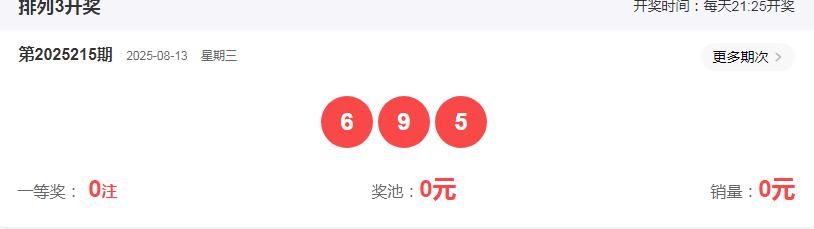排列三第2025215期开奖回顾:开奖号码:695 形态:组六