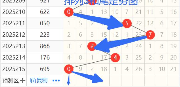 依次是57240和尾,按照012路排序是21210路和尾,后面两期不是同路,今天就是0路或1路的和尾,为什么这么讲呢,这个是个大概率的问题,也是根据长期的研究规律定的,准确率相当高,我们定了1 0路的和尾,也就是1470369和尾,那么我们再来看和值,按照和值除3余数的话,可以分为余0 1 2路. 那么我们来看211期和值5余2,212期和值7余1,213期和值22余1,214期和值14余2,215期和值20余2,结合路数关系来讲,所以和值可余1和余0,结合上面的和尾的话就只有10 13 16 19 7 21 24 9 这几个和值,