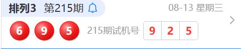 排列3第215期开奖结果为:695