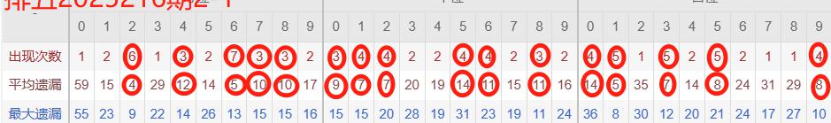 下图所圈出的为近30期各位置所出现的热码出现次数及平均遗漏值,用以参考和一些冷码组合选号。