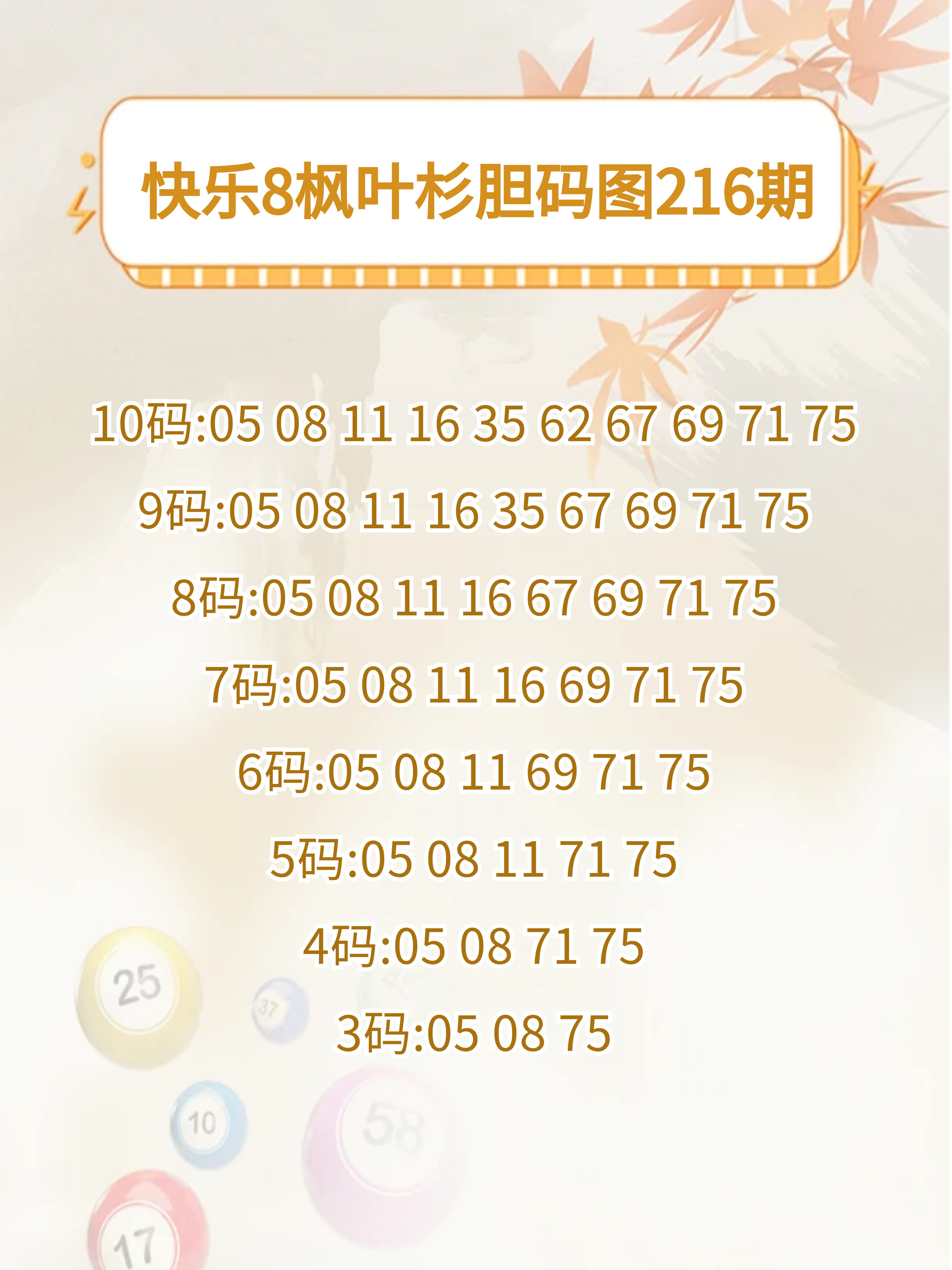 快乐8 25216期枫叶杉胆码图谜