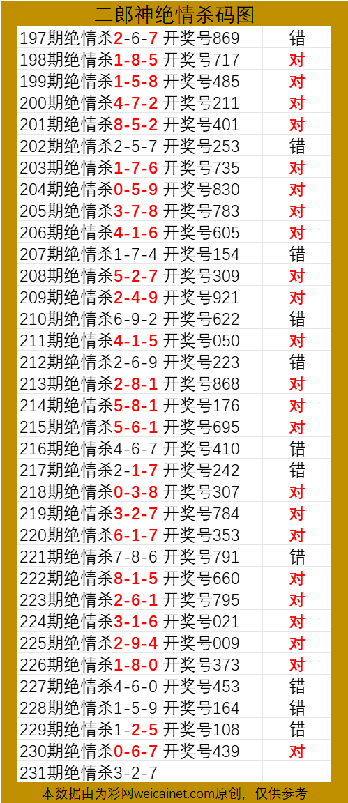 排列三25231期二郎神杀号 绝情杀三码 发表于:2025-08-29 11:14:48 浏览次数:0 上一篇:排列三25231期胆码预测分析 专家推荐175 下一篇:排列三25231期关羽期期精杀两码 推荐文章