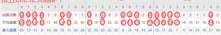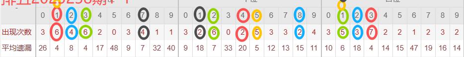 下图所圈出的为近30期各位置所出现的热码出现次数及平均遗漏值,用以参考和一些冷码组合选号。