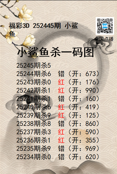 福彩3D25245期分析师小鲨鱼杀号图精选 发表于:2025-09-12 13:14:55 浏览次数:0 上一篇:福彩3D25245期码师小贝杀号图精选 下一篇:福彩3D25245期财神送彩杀三码 推荐文章