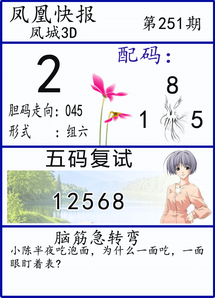25251期: 福彩3D财神精选胆码杀码