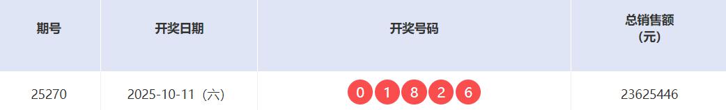 第2025270期排列五开奖号码为 0-1-8-2-6,和值17,奇偶比为1:4,大小比为2:3,跨度8,012路形态为0路、1路、2路、2路、0路。全国一等奖开出82注,每注奖金100,000元。本期我们将结合近30期走势数据,为大家带来第271期的分析推荐。
