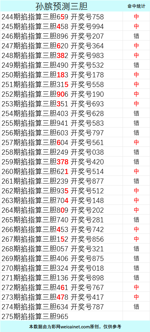 福彩3D25275期胆码 蓝色妖姬胆码图