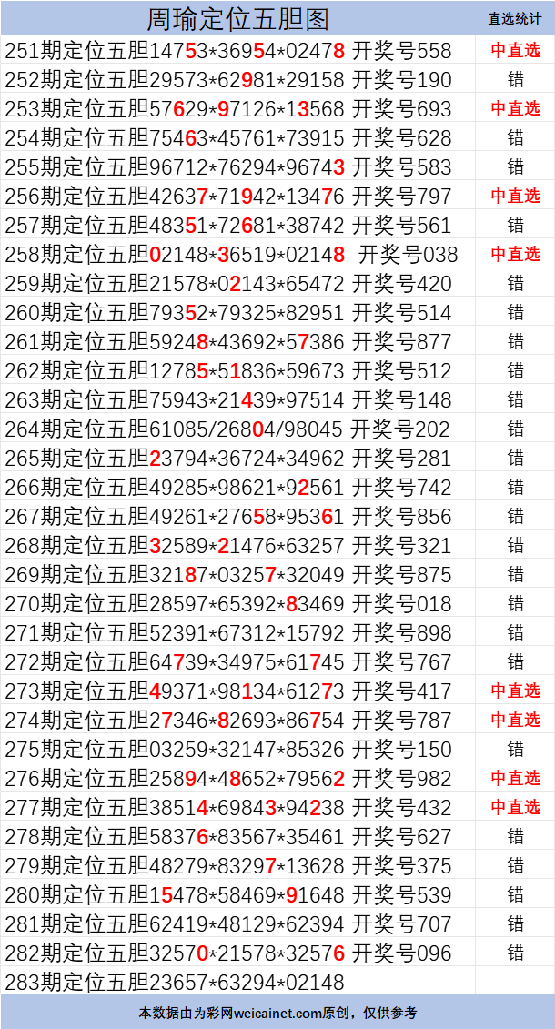 排列三25283期胆码 周瑜定位五胆图