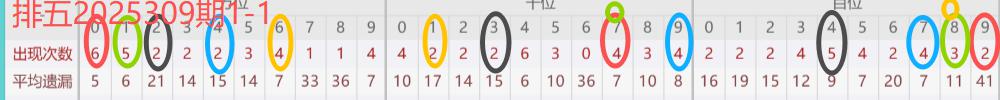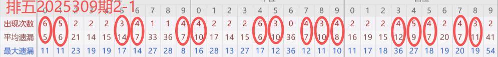 下图所圈出的为近30期各位置所出现的热码出现次数及平均遗漏值,用以参考和一些冷码组合选号。