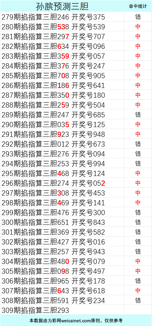 福彩3D25309期胆码 蓝色妖姬胆码图